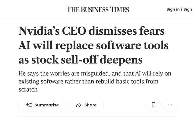 科技分析报道】2月5日动静,认为AI会让软件公司得到存正在意义是一种。为AI使用供给了支持。他指出,激发全球软件股呈现较着抛售,